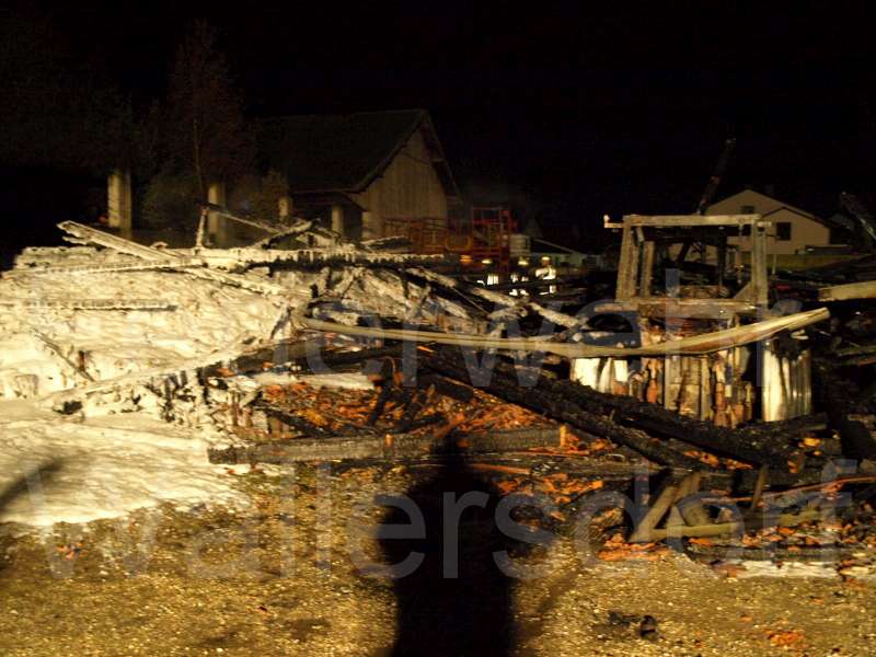 Brand "Brand eines Landwirtschaftlichen Lagerhalle" Die Feuerwehren Wallersdorf, Moosfürth, Haidlfing, Otzing, Zeholfing, Landau und Höfen wurden zu einem Großbrand in die Gärtnerstraße in Wallersdorf alarmiert. Bei Eintreffen der Feuerwehr stand eine Scheune mit einer Größe von ca. 20 x 12 m bereits im Vollbrand. Von der FF Wallersdorf wurden Widerstandslinien zu den benachbarten Gebäuden errichtet und der Brand mit Schaumzusatz bekämpft. Die Feuerwehr Haidlfing übernahm die Brandbekämpfung an der Rückseite der Scheune vom Steinweg aus. Die Wehren Moosfürth und Zeholfing errichteten vom Anwesen Weinzierl aus Widerstandslinien, das Gebäude wurde im Innenbereich mit der Wärmebildkamera kontrolliert. Die FF Otzing lieferte mit dem TLF Wasser an die Einsatzstelle und stellte Atemschutzgeräteträger für die Brandbekämpfung. Die Wehr Landau wurde im Innenhof mit der Drehleiter zur Brandbekämpfung mit dem Wenderohr eingesetzt. Vom Abrollbehälter Atemschutz der Wehr Höfen wurden die Atemschutzträger mit Pressluftatmern ausgerüstet. Ein Übergreifen auf benachbarte Gebäude konnte verhindert werden. Die FF Wallersdorf stellte bis zum Morgen eine Brandwache. |