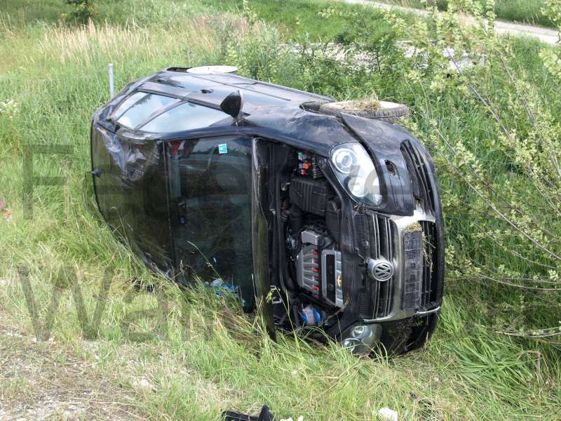 Technische Hilfe "Verkehrsunfall A92" Nach einem starken Regenschauer war ein PKW ins Schleudern geraten und hatte sich überschlagen. |