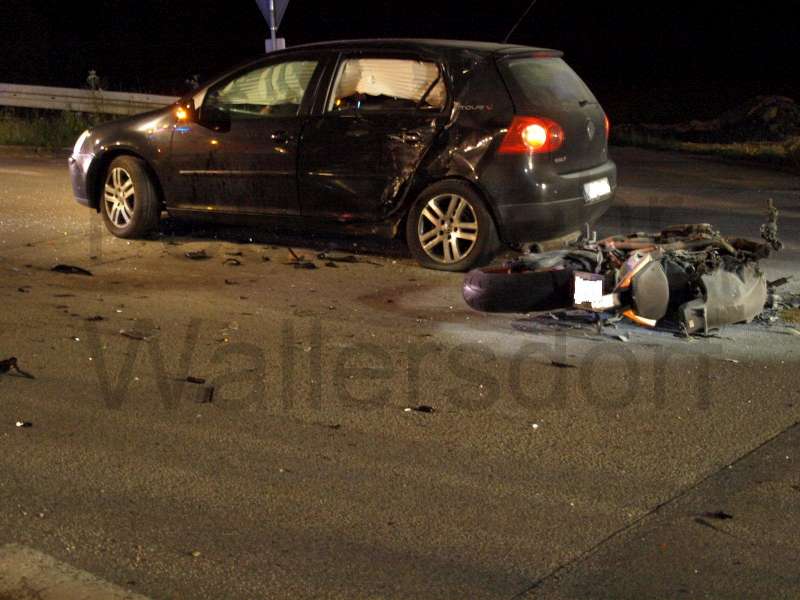 Technische Hilfe "Verkehrsunfall" Am Ortsausgang Wallersdorf Richtung Ganacker war ein PKW frontal gegen einen Baum gefahren. |