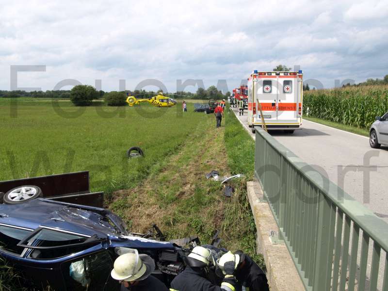 Technische Hilfe "Verkehrsunfall A92" Zwischen den Anschlussstellen Landau und Wallersdorf West Fahrtrichtung Deggendorf war ein PKW bei hoher Geschwindigkeit von der Fahrbahn abgekommen und hatte sich überschlagen. |