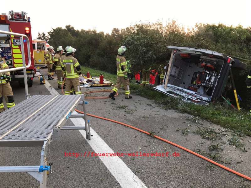 Technische Hilfe "Verkehrsunfall A92" Ein Rettungswagen war auf der A92 verunglückt und in dem Fahrzeug waren Personen eingeklemmt. |