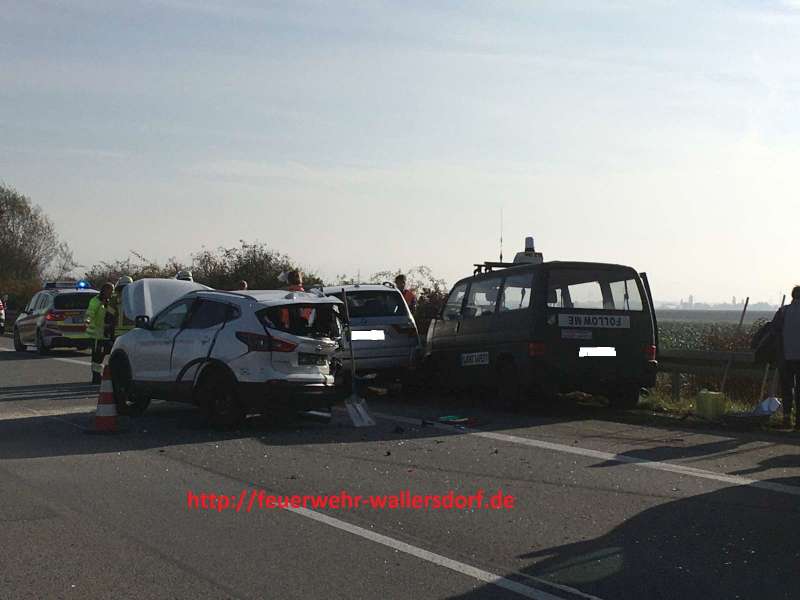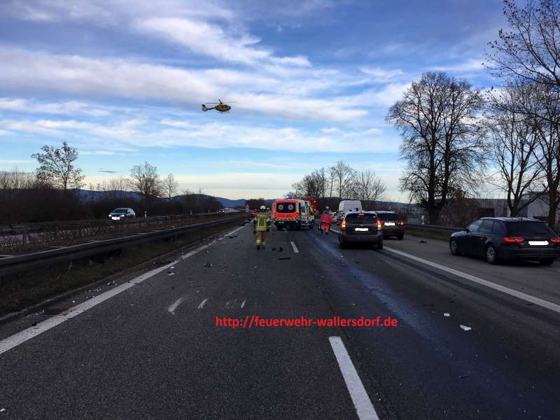 Technische Hilfe "Verkehrsunfall 4 PKW A92" Die Feuerwehr Wallersdorf wurde zu einem Verkehrsunfall auf die A92 mit 4 PKW alarmiert. |